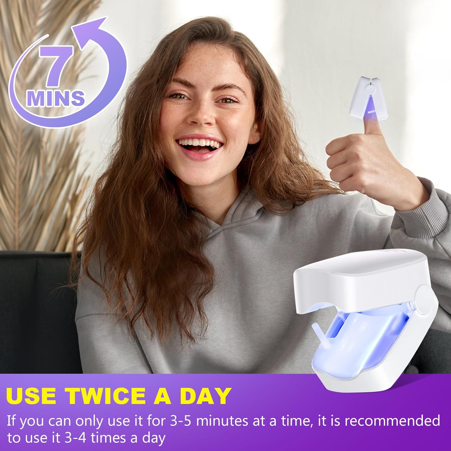 - 🎒【Portable and Compact Design】The device is made of hard plastic material, compact and light enough to carry around. You can enjoy nail improvement whether at home, in the office or outdoors. Save you time and money from doctor visits.