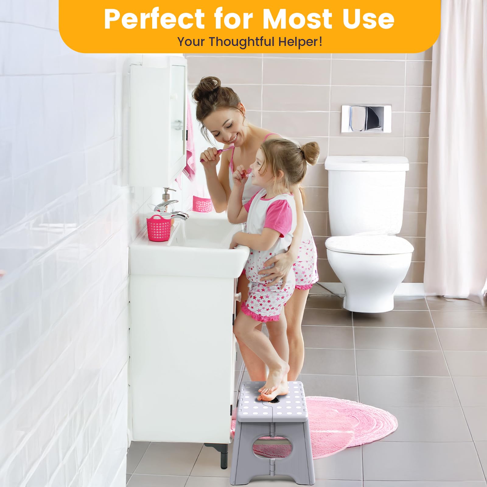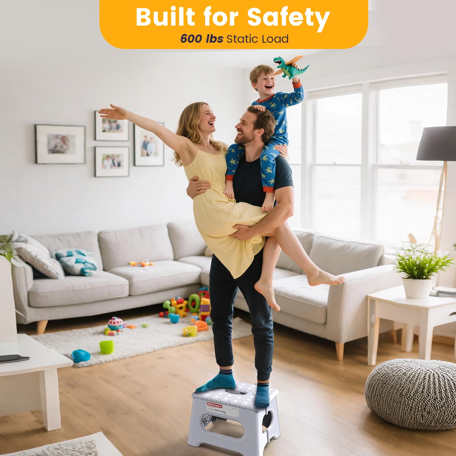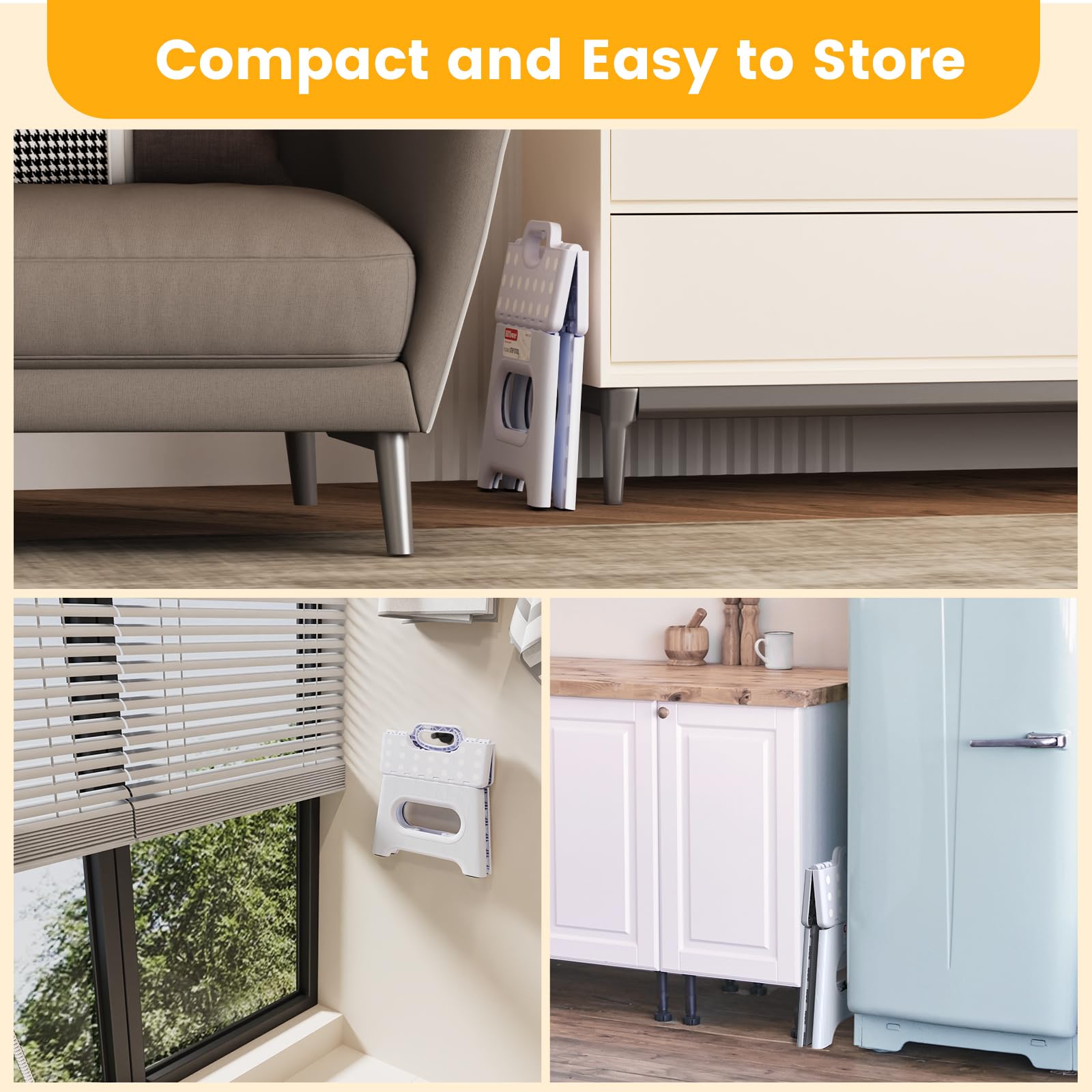 Folding Step Stool 9 Inch - Holds 600 lb, Non-Slip Surface & Carry Handle - Sturdy Step Stool for Kids, Toddlers & Adults - Compact Foldable Foot Stool for Kitchen, Bathroom, Bedroom(White)
