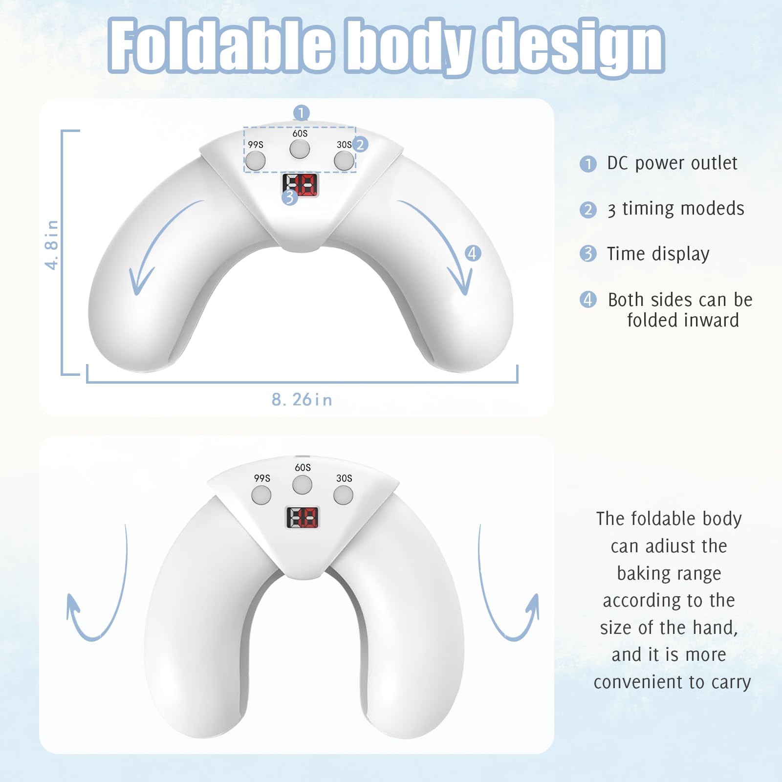 - 【Material/Size】 : ABS Product Material, The Body Can Be Folded Design, The Volume Is Reduced For Storage, This Nail Light Device Is Larger Than The Single-Toenail/Finger Device, Allows You To Put All Fingers/Toenails At Once, Which Saves Your Time. And It Has A Total Of 22 Led, Which Interact With 470nm Blue Light And 905nm Invisible Infrared Light, Providing Best Solution.